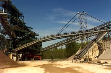 pertanto una struttura che viene impiegata, nello stesso modo, anche per nastri di diversa lunghezza. Nei nastri inclinati, il telaio puo' essere sorretto da opportuni controtelai che consentono un interspazio fra i pali di sostegno fino a 30 m. E' evidente l'utilita' di questa realizzazione, soprattutto dove un elevato numero di pali di sostegno potrebbe pregiudicare lo spazio a disposizione ed il normale flusso degli automezzi. La testata traente e' un gruppo compatto, composta dal rullo traente gommato con supporti completi di cuscinetti a rulli, e riduttore in bagno d'olio, completo di antiretro nei nastri inclinati. Il tamburo di rinvio, tornito bombato, e' montato su cuscinetti oscillanti e nei nastri corti funziona anche come tenditore, mentre nei nastri lunghi la tensione del tappeto avviene mediante tenditore a tre rulli e contrappeso. Le staffe portarulli superiori sono realizzate in modo da poter essere registrate e reggono rulli di grande diametro, disposti a coppie o a terne e autolubrificati. I rulli inferiori sono anch'essi regolabili e hanno le stesse caratteristiche dei rulli superiori. |