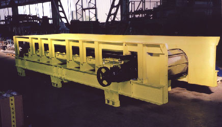 La struttura e' composta di un robustissimo telaio su cui sono montate le ruote traenti con denti intercambiabili in acciaio temprato, le ruote tenditrici ed il portanastro, anch'esso in acciaio. |