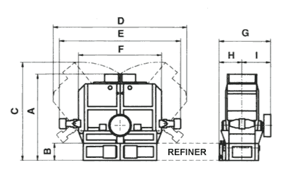 The machine is equipped with safety device, in case of passage of non crushable objects. When a high percentage of fine product is required, the machine may be supplied with a refiner which consists of an extension of the crushing chamber which has two indipendent valves, also hydraulically adjustable. Hammers and wall linings are made anti-abrasive steel. |