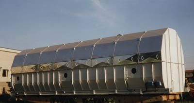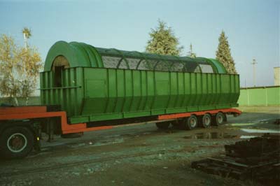 Il corpo vagliante e' costituito da due virole che comprendono le fasce di rotolamento tornite, delle quali una e' munita di bordi entro i quali sono disposti i rulli di guida conici, su bilanciere. Le due virole sono collegate longitudinalmente mediante bullonatura |